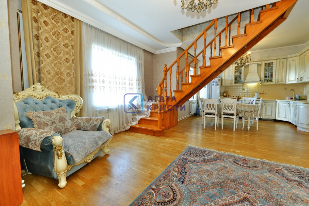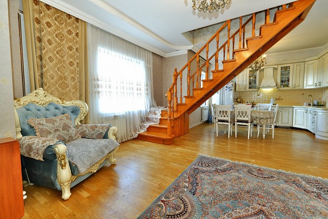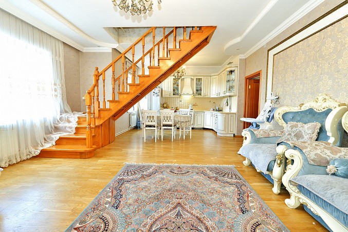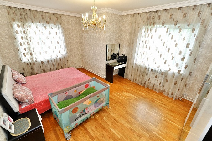 Дом 2016 года постройки, монолитный железобетонный фундамент, железобетонные перекрытия, стены из газобетонного беноблока, обложены кирпичом. Все коммуникации центральные: электроэнергия, газ, водопровод, канализация. В доме на первом этаже просторная кухня-гостиная 39 кв.м и спальня 16,5 кв.м, санузел, котельная, большая прихожая. На втором этаже дома 3 спальни 22, 21 и 11 кв.м, раздельный санузел.