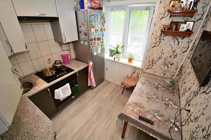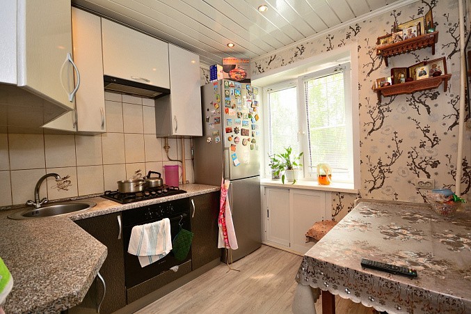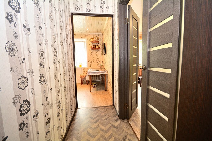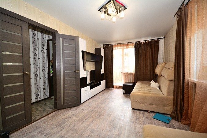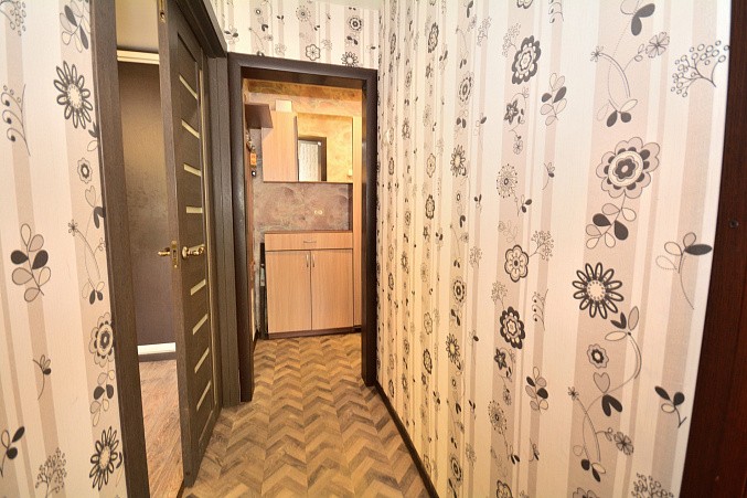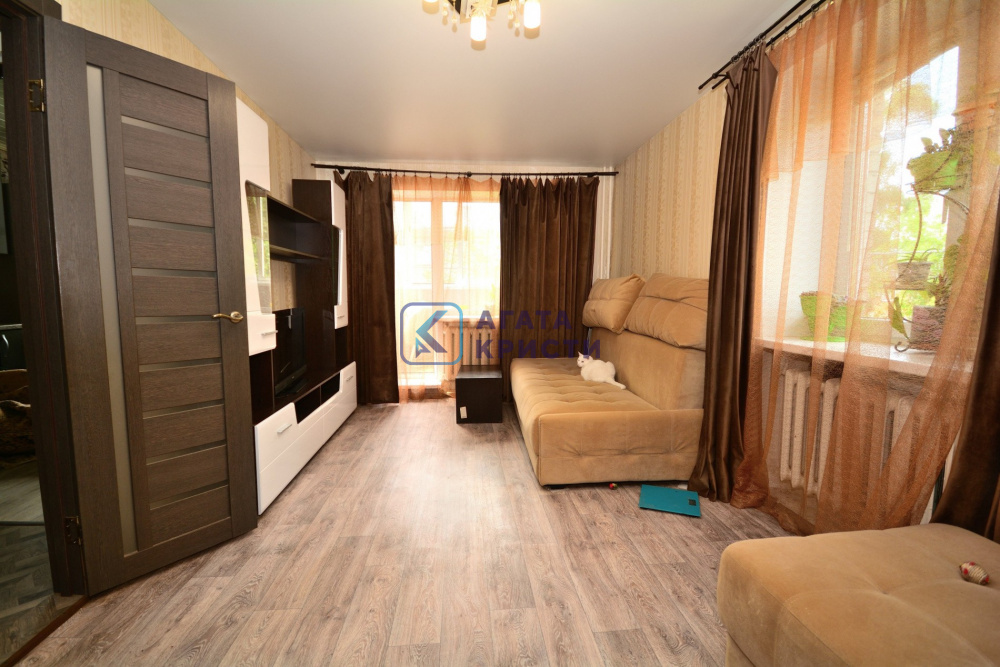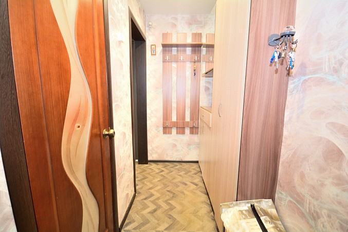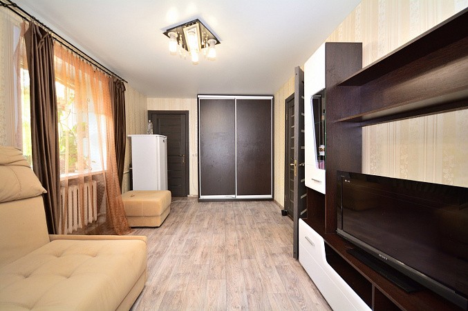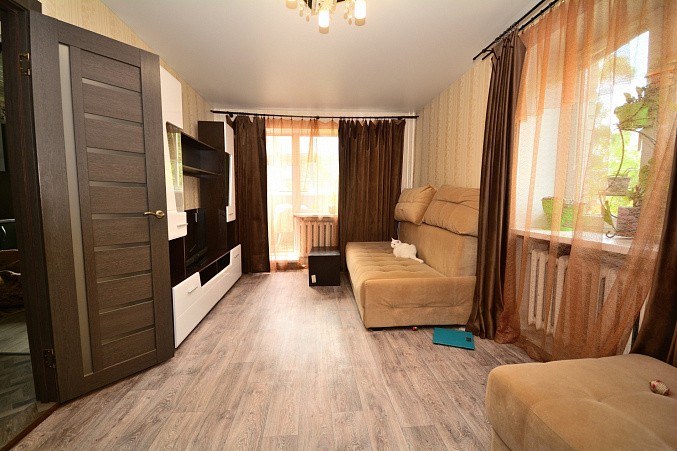 В квартире сделан хороший ремонт, квартира очень светлая и теплая. Удобная планировка, просторная комната с кладовой и выходом на застекленный балкон. Кухня 6,5 кв.м., санузел совмещенный. В квартире остается бОльшая часть мебели и техники.