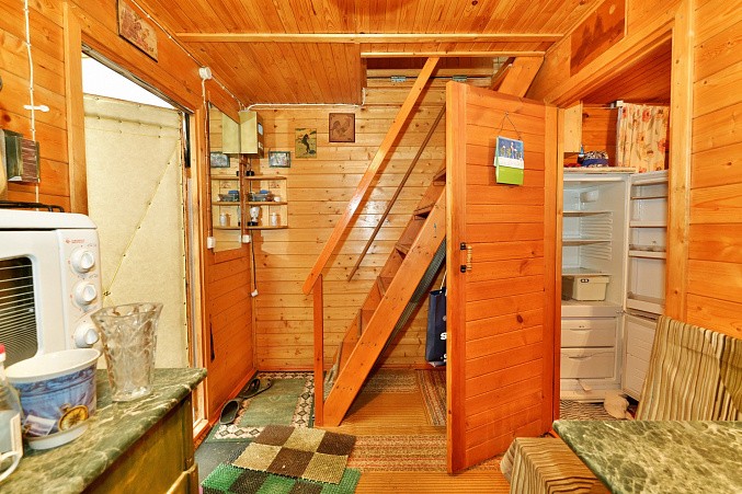 Дом на ленточном фундаменте, каркасный, утеплен. На 1 этаже одна комната и кухня. На 2 этаже 1 комната.