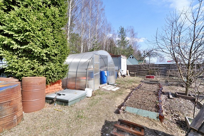 Участок ухожен – множество грядок, кустарников и деревьев. Есть теплица, хозблок. Откатные ворота с электроприводом.