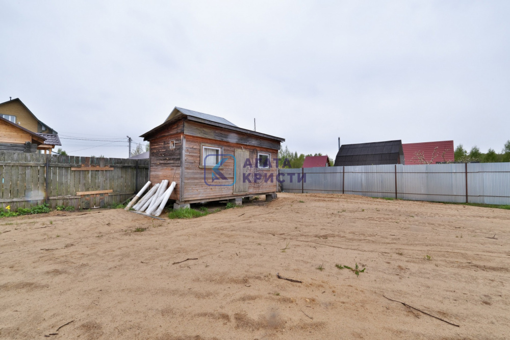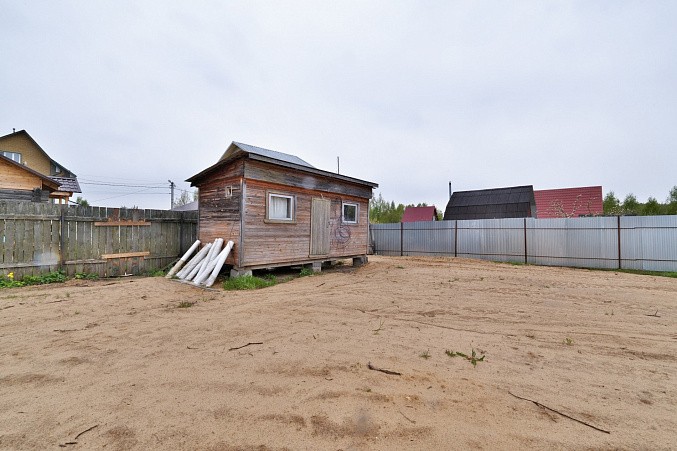На участке расположен бытовка. Участок 6 соток - ровной прямоугольной формы.
