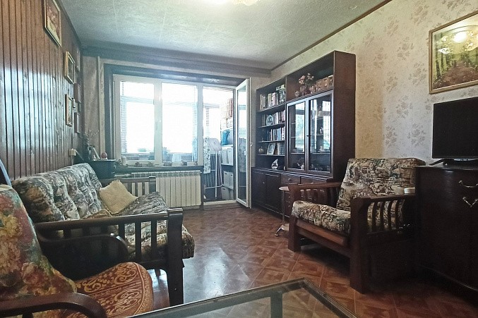 Квартира расположена на 1-ом этаже 5-этажного дома. Квартира НЕ угловая. Хорошее состояние, полностью готова к проживанию. Кухня с качественным гарнитуром. В квартире частично остаётся мебель, в том числе дорогостоящая гардеробная система - шкаф-купе (США). Имеется застеклённый балкон с погребом.