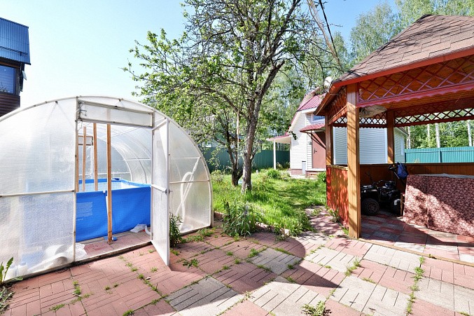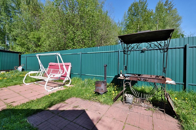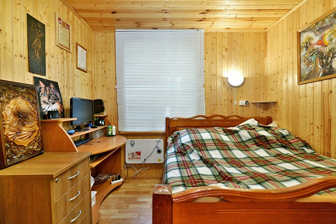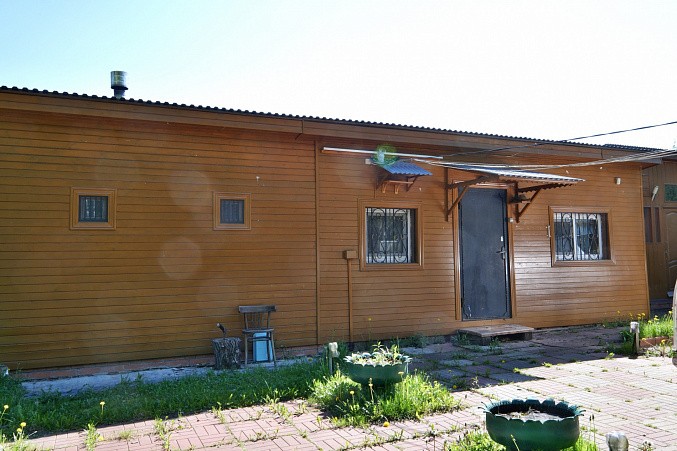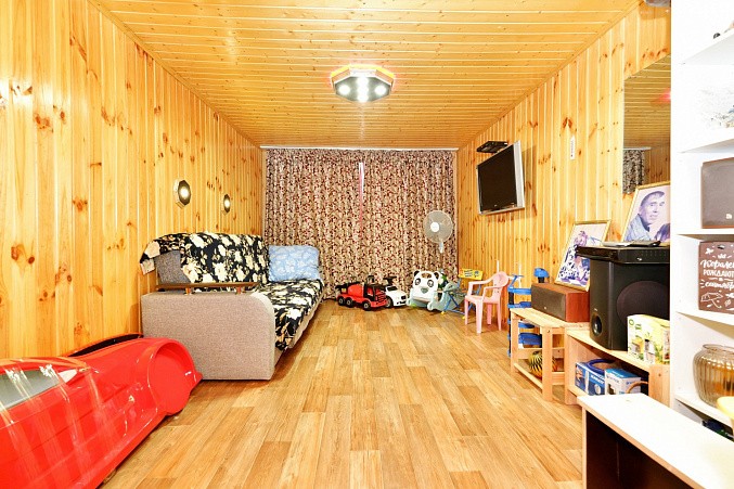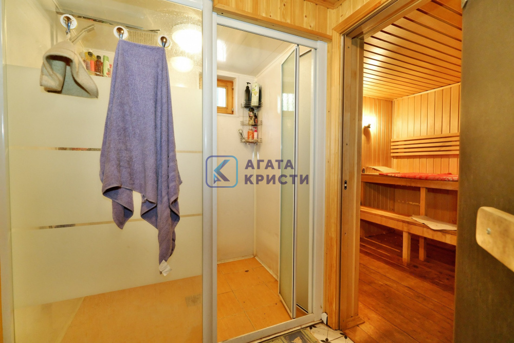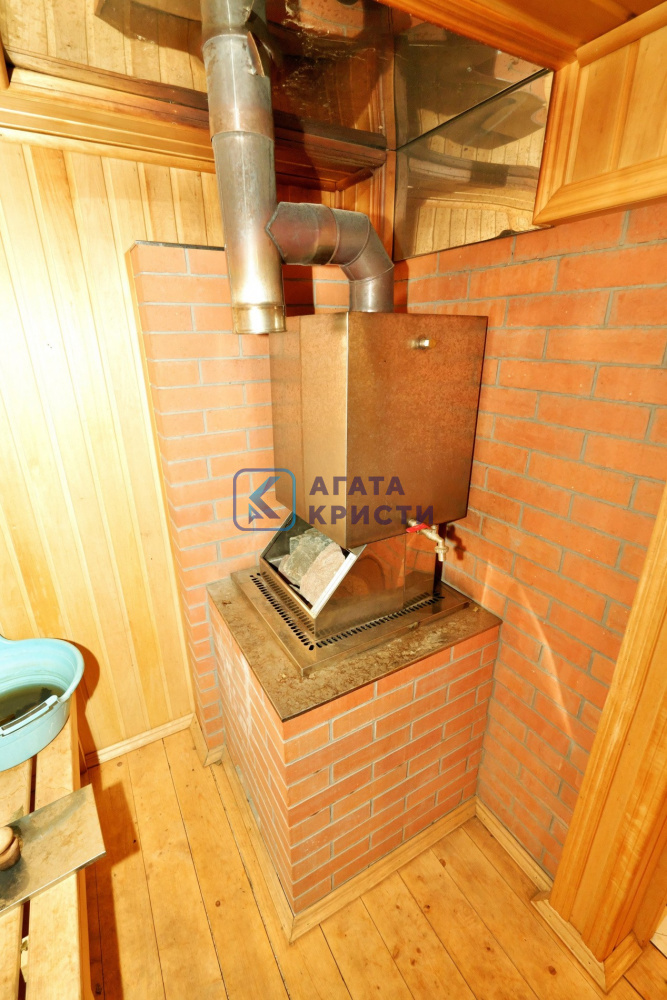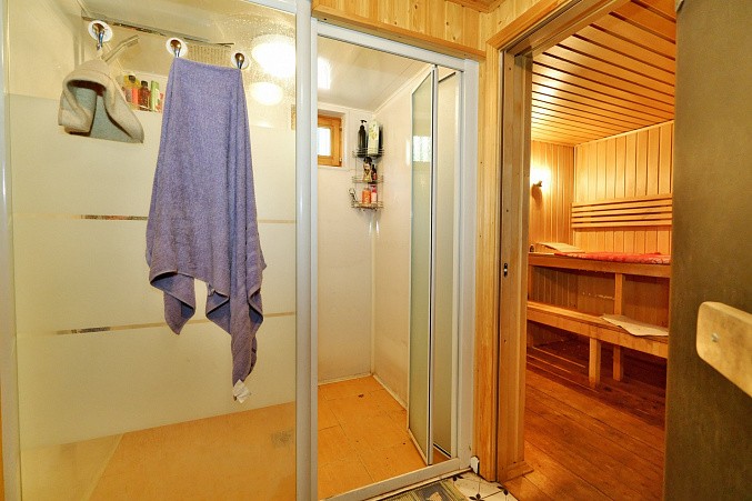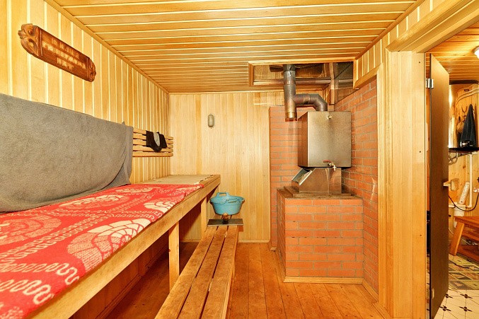 - Баня, примерная площадь - 30 кв. м, из кирпича-бруса (обшита вагонкой), есть душевая, гостевая комната;
