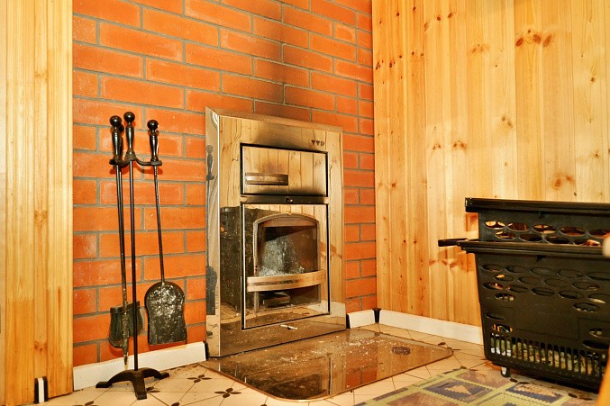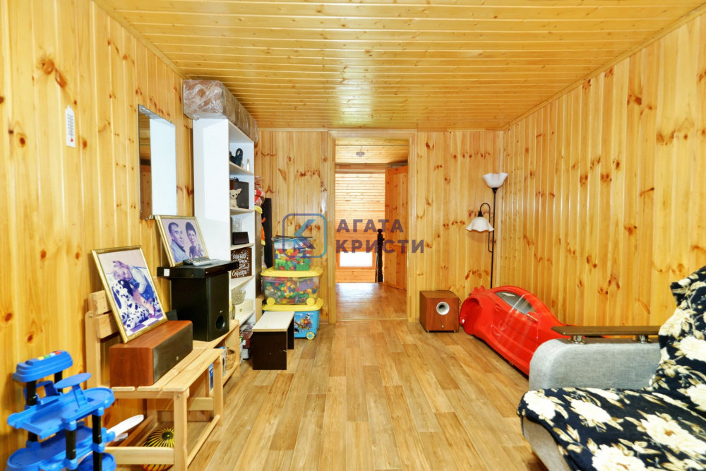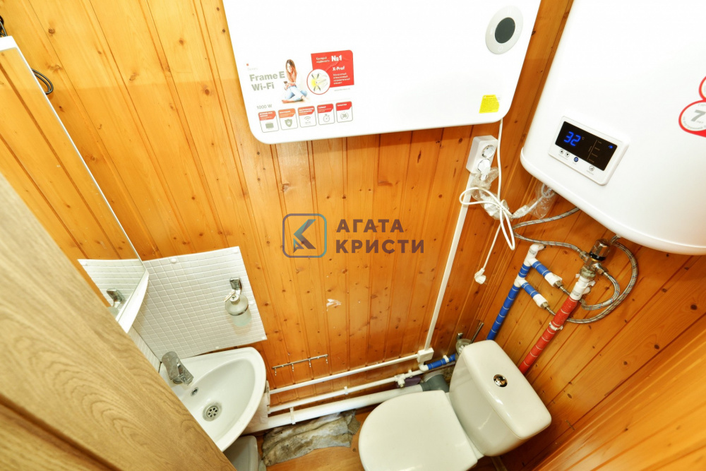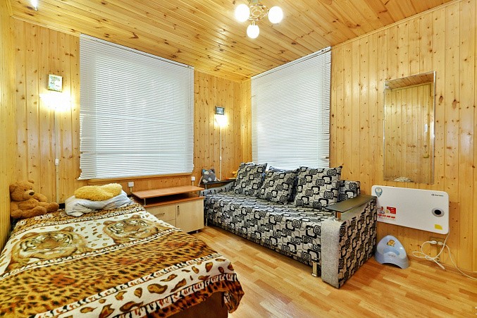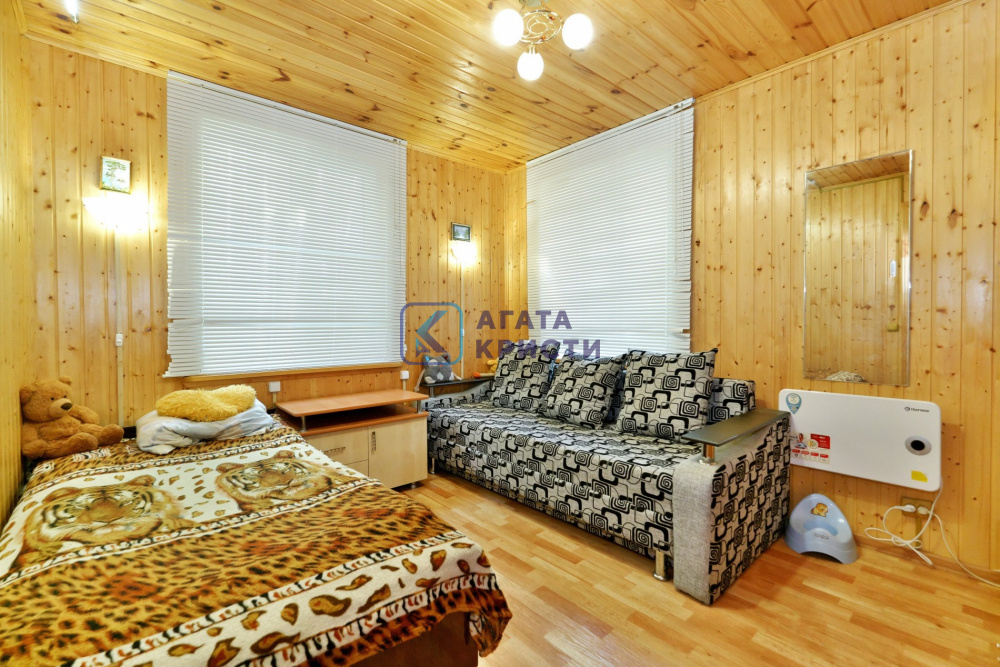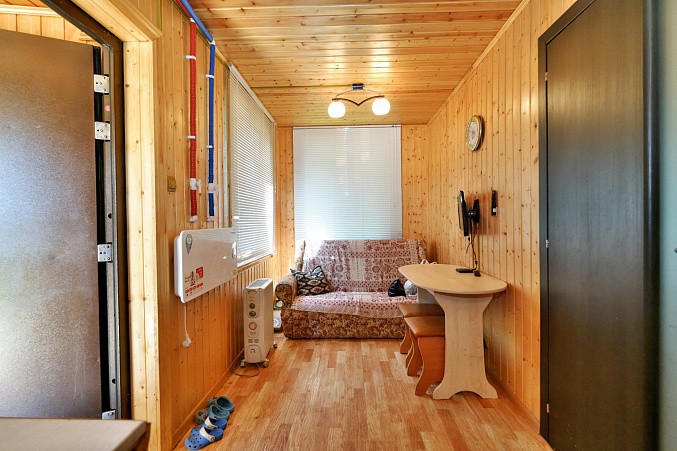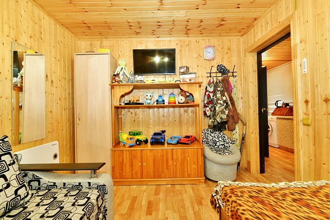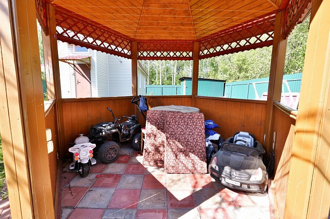 - Баня, примерная площадь - 30 кв. м, из кирпича-бруса (обшита вагонкой), есть душевая, гостевая комната;