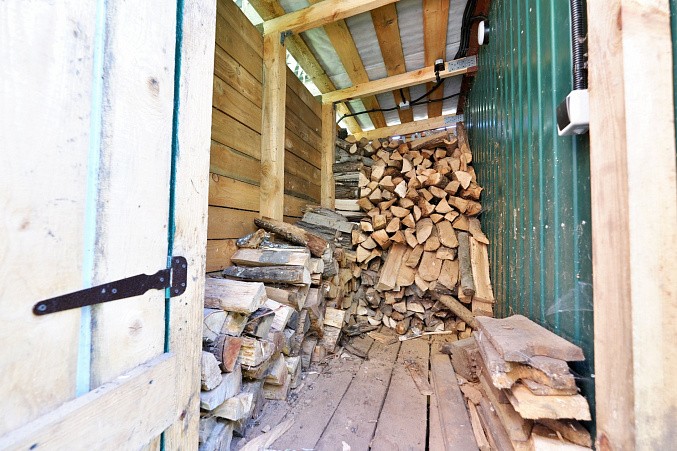 - Сарай, примерная площадь - 8 кв. м, стоит на блоках + дровница;