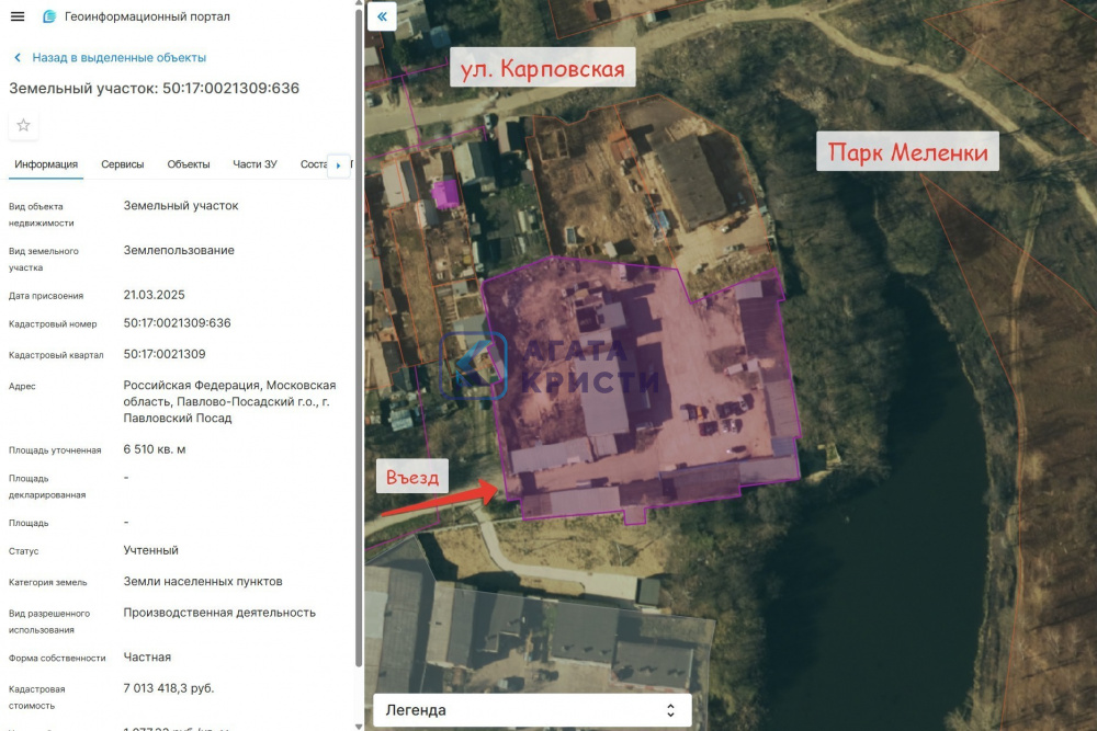 Продаётся производственно-складской комплекс зданий общей площадью 1500 кв.м на участке 65 соток (кадастровый номер участка 50:17:0021309:636).