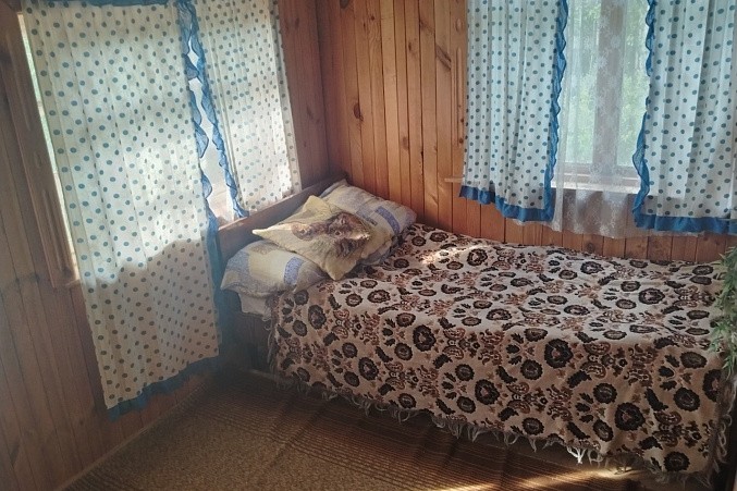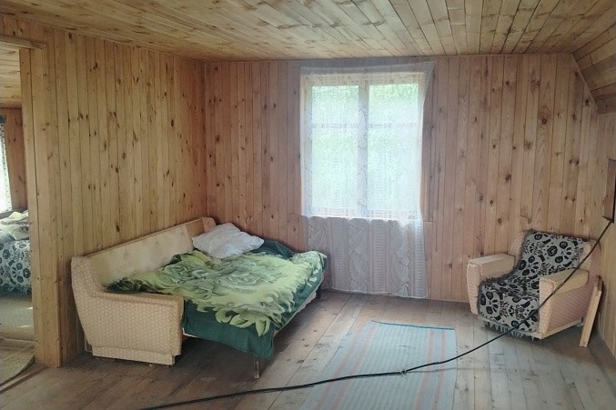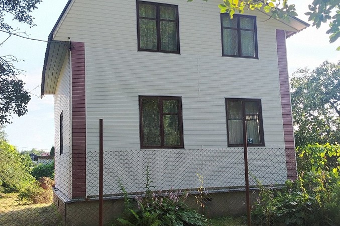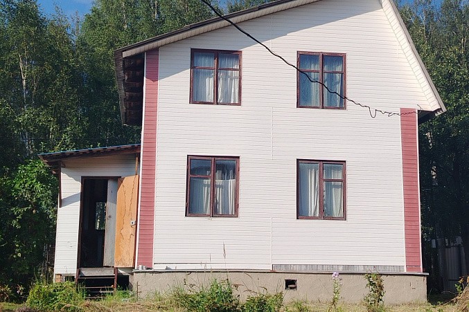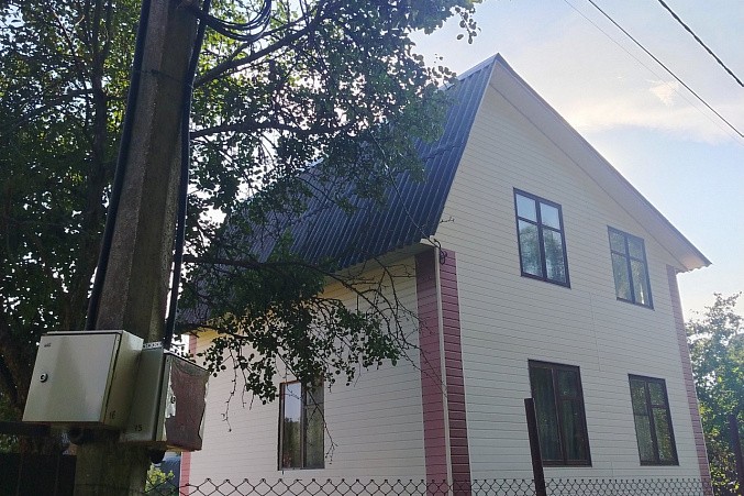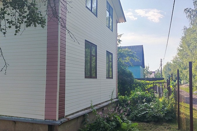 Дом из бруса, снаружи отделан сайдингом, ленточный фундамент. Внутренняя отделка дома - вагонка.