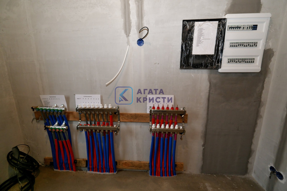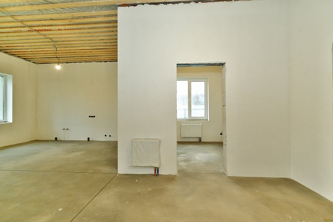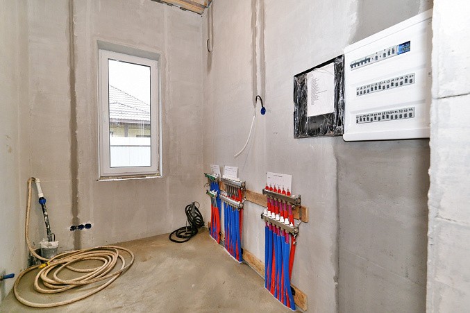 Дом продаётся в состоянии WhiteBox. Сделано отопление - теплые полы и радиаторы. Сделана стяжка пола. Выровнены и ошпаклеваны стены. Сделана разводка электрики.