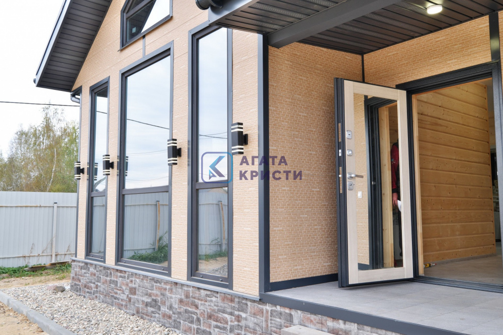 Дом на железобетонном монолитном фундаменте, построен по каркасной технологии, утепление 150/200. Отделка фасада - металлические утепленные сендвич панели (см. фото в карусели). Мягкая кровля. Энергосберегающие окна.