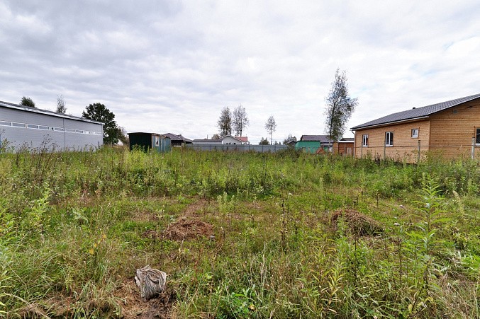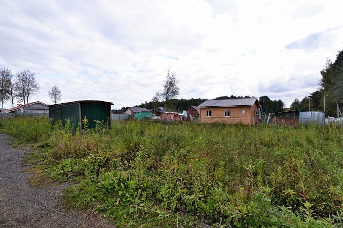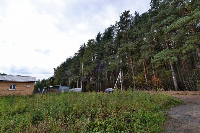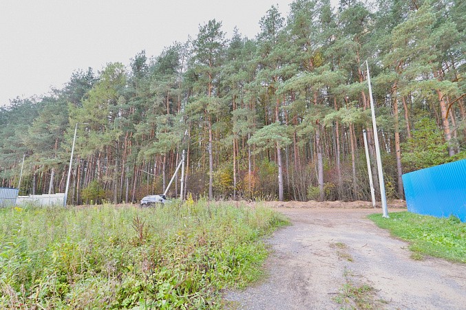Участок высокий, ровной прямоугольной формы, сухой. По границе газ, свет. Удобный асфальтированный подъезд. На участке строительный вагончик хозблок.