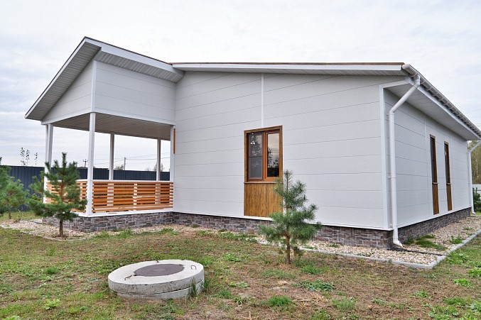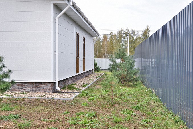 Дом на железобетонном монолитном фундаменте, построен по каркасной технологии, утепление 150/200. Отделка фасада - металлические утепленные сендвич панели. Мягкая кровля. Энергосберегающие окна.