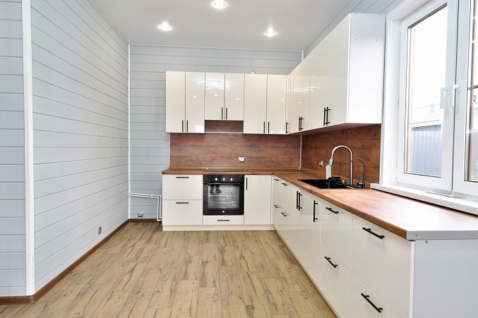 В доме кухня-гостиная, три изолированные спальни, совмещенный санузел, котельная.