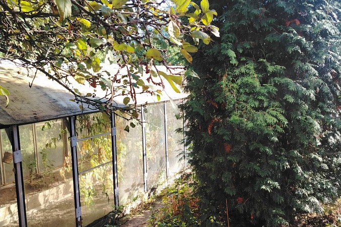 Также, две теплицы. Грядки, плодовые растения и деревья.