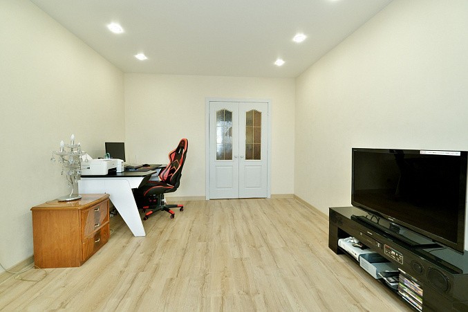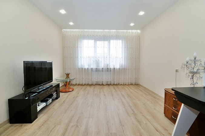 Состояние квартиры хорошее. Сделан свежий ремонт в санузел и в комнатах. Имеются тёплые полы в прихожей. Практически вся мебель и техника остаются. Сделан капитальный ремонт кровли.