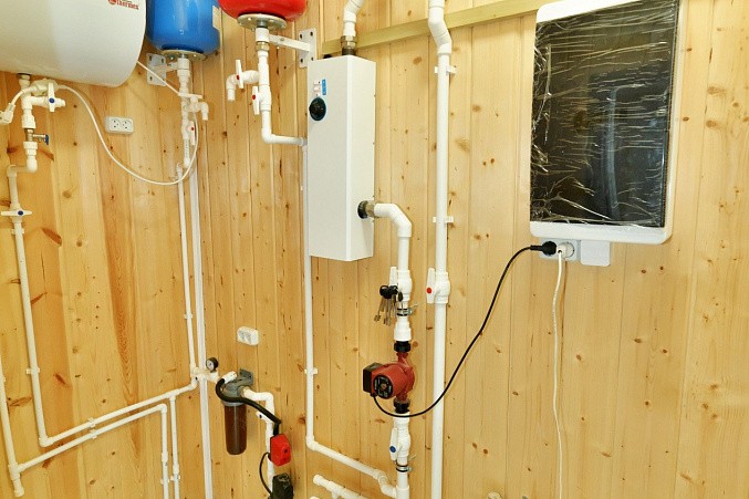 Отопление - электрический котел. По всему дому радиаторы + везде теплый пол (кроме жилых комнат).