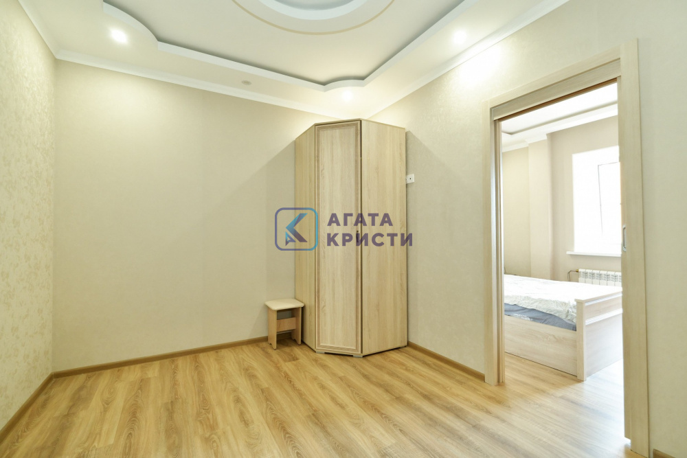Дом построен в 2018 году. Квартира расположена на 7-ом этаже 15-этажного дома, не угловая, тёплая, удобная планировка (сделано удобное зонирование: спальная и гостиная зона). Сделан современный, качественный ремонт: плитка на полу, навесной потолок. Раздельный санузел (в плитке и с тёплым полом). Сделан вывод под раковину в туалете. Квартира площадью 45,9 кв. м, просторная кухня площадью 11,5 кв.м. Остаётся вся мебель и техника, кроме стиральной машины.