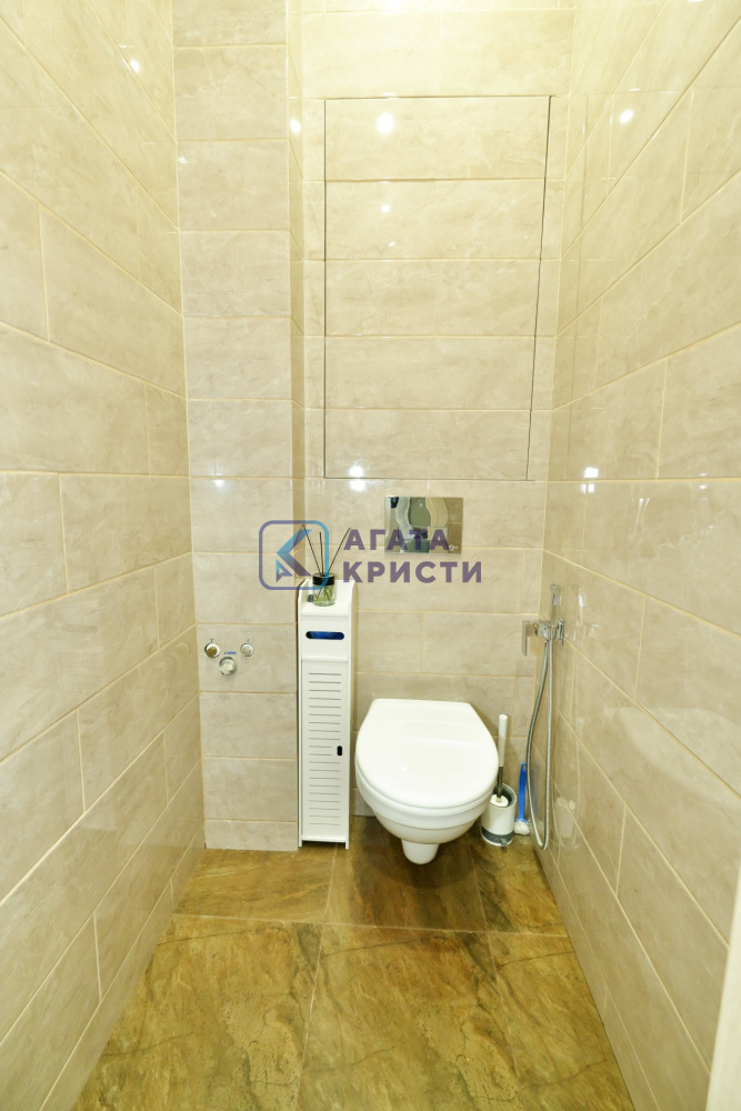 Дом построен в 2018 году. Квартира расположена на 7-ом этаже 15-этажного дома, не угловая, тёплая, удобная планировка (сделано удобное зонирование: спальная и гостиная зона). Сделан современный, качественный ремонт: плитка на полу, навесной потолок. Раздельный санузел (в плитке и с тёплым полом). Сделан вывод под раковину в туалете. Квартира площадью 45,9 кв. м, просторная кухня площадью 11,5 кв.м. Остаётся вся мебель и техника, кроме стиральной машины.