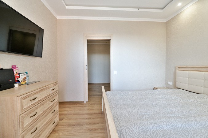 Дом построен в 2018 году. Квартира расположена на 7-ом этаже 15-этажного дома, не угловая, тёплая, удобная планировка (сделано удобное зонирование: спальная и гостиная зона). Сделан современный, качественный ремонт: плитка на полу, навесной потолок. Раздельный санузел (в плитке и с тёплым полом). Сделан вывод под раковину в туалете. Квартира площадью 45,9 кв. м, просторная кухня площадью 11,5 кв.м. Остаётся вся мебель и техника, кроме стиральной машины.