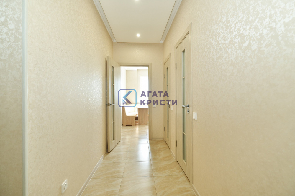 Дом построен в 2018 году. Квартира расположена на 7-ом этаже 15-этажного дома, не угловая, тёплая, удобная планировка (сделано удобное зонирование: спальная и гостиная зона). Сделан современный, качественный ремонт: плитка на полу, навесной потолок. Раздельный санузел (в плитке и с тёплым полом). Сделан вывод под раковину в туалете. Квартира площадью 45,9 кв. м, просторная кухня площадью 11,5 кв.м. Остаётся вся мебель и техника, кроме стиральной машины.