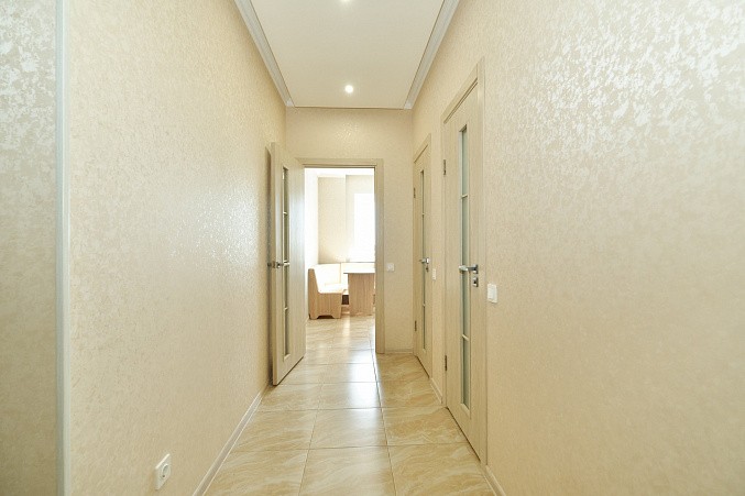 Дом построен в 2018 году. Квартира расположена на 7-ом этаже 15-этажного дома, не угловая, тёплая, удобная планировка (сделано удобное зонирование: спальная и гостиная зона). Сделан современный, качественный ремонт: плитка на полу, навесной потолок. Раздельный санузел (в плитке и с тёплым полом). Сделан вывод под раковину в туалете. Квартира площадью 45,9 кв. м, просторная кухня площадью 11,5 кв.м. Остаётся вся мебель и техника, кроме стиральной машины.