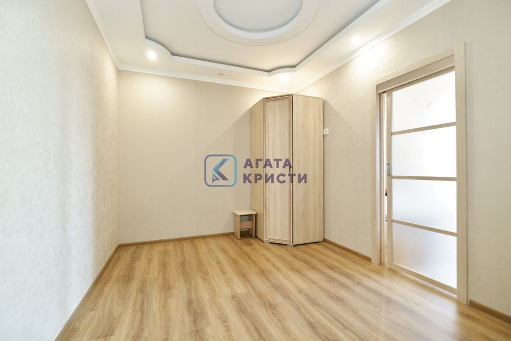 Дом построен в 2018 году. Квартира расположена на 7-ом этаже 15-этажного дома, не угловая, тёплая, удобная планировка (сделано удобное зонирование: спальная и гостиная зона). Сделан современный, качественный ремонт: плитка на полу, навесной потолок. Раздельный санузел (в плитке и с тёплым полом). Сделан вывод под раковину в туалете. Квартира площадью 45,9 кв. м, просторная кухня площадью 11,5 кв.м. Остаётся вся мебель и техника, кроме стиральной машины.