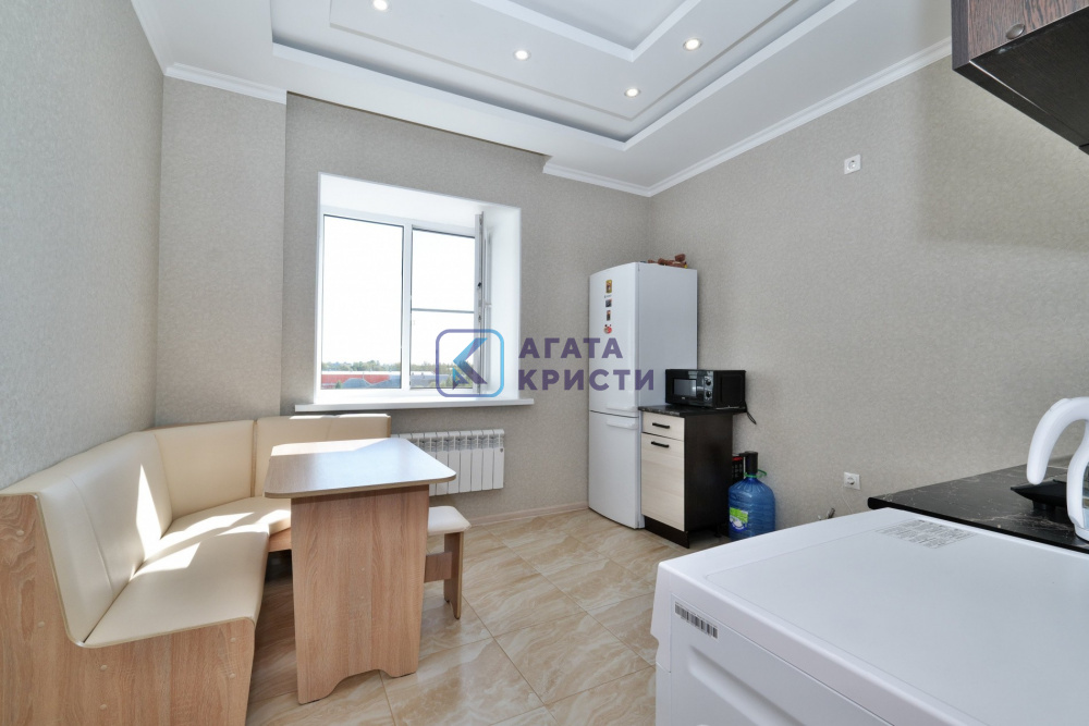 Дом построен в 2018 году. Квартира расположена на 7-ом этаже 15-этажного дома, не угловая, тёплая, удобная планировка (сделано удобное зонирование: спальная и гостиная зона). Сделан современный, качественный ремонт: плитка на полу, навесной потолок. Раздельный санузел (в плитке и с тёплым полом). Сделан вывод под раковину в туалете. Квартира площадью 45,9 кв. м, просторная кухня площадью 11,5 кв.м. Остаётся вся мебель и техника, кроме стиральной машины.