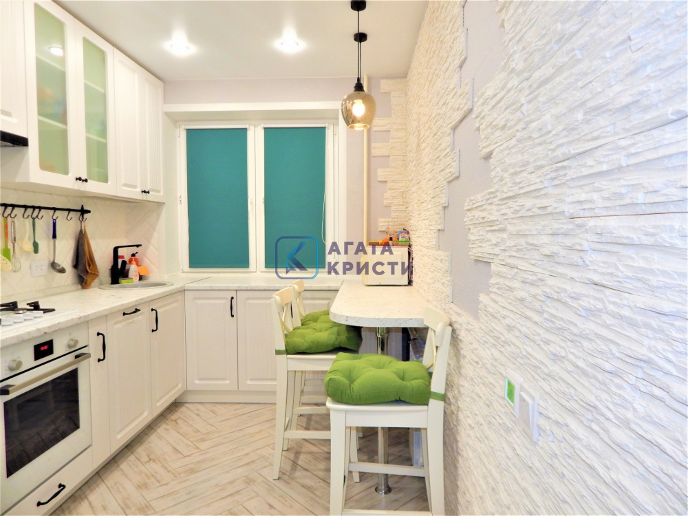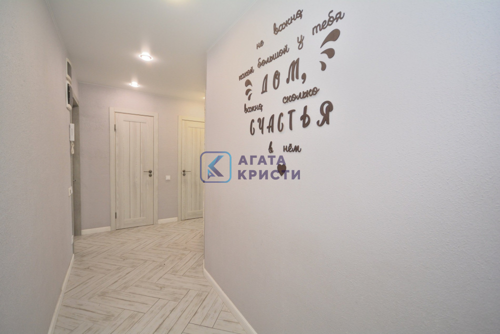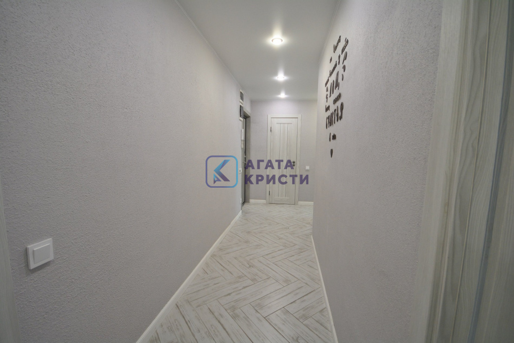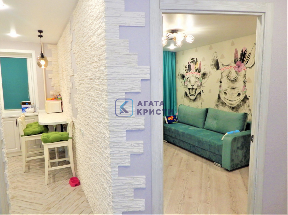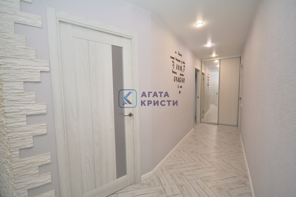 В квартире сделан Евро-ремонт, полностью заменена электро-проводка, заливалась стяжка пола, все стены выровняны. Теплый пол в коридоре, кухне, санузлах. Просторный коридор, изолированные комнаты, гардеробная, санузел раздельный, окна выходят на две стороны дома. Балкон, лоджия утеплена - выведены розетки под компьютер.