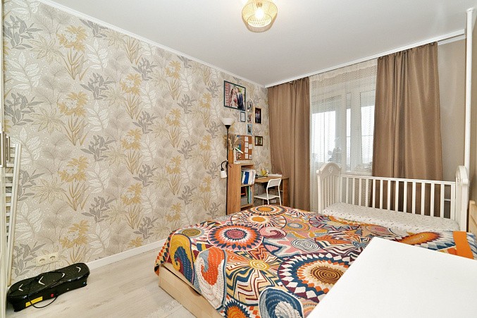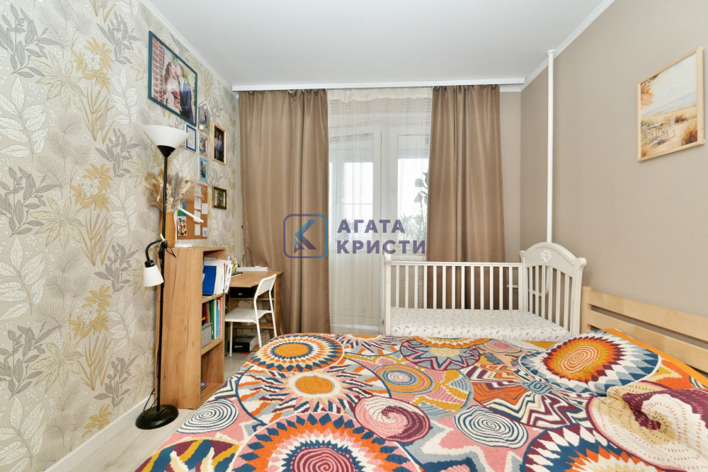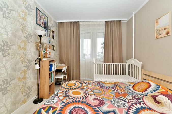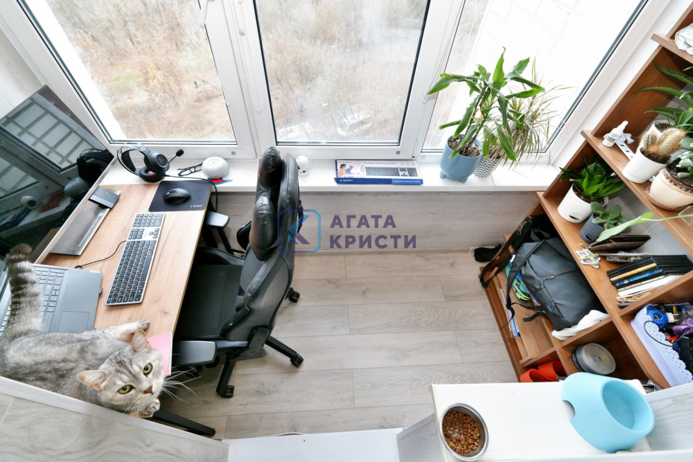 Просторная квартира с удобной планировкой - две изолированные комнаты 20 и 14 кв.м, в каждой комнате есть лоджия (застеклена). В одной из комнат на лоджии обустроен кабинет. Просторный коридор и большая кухня 10 кв.м. Остается кухонный гарнитур.
