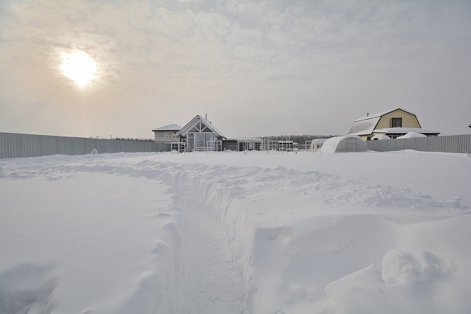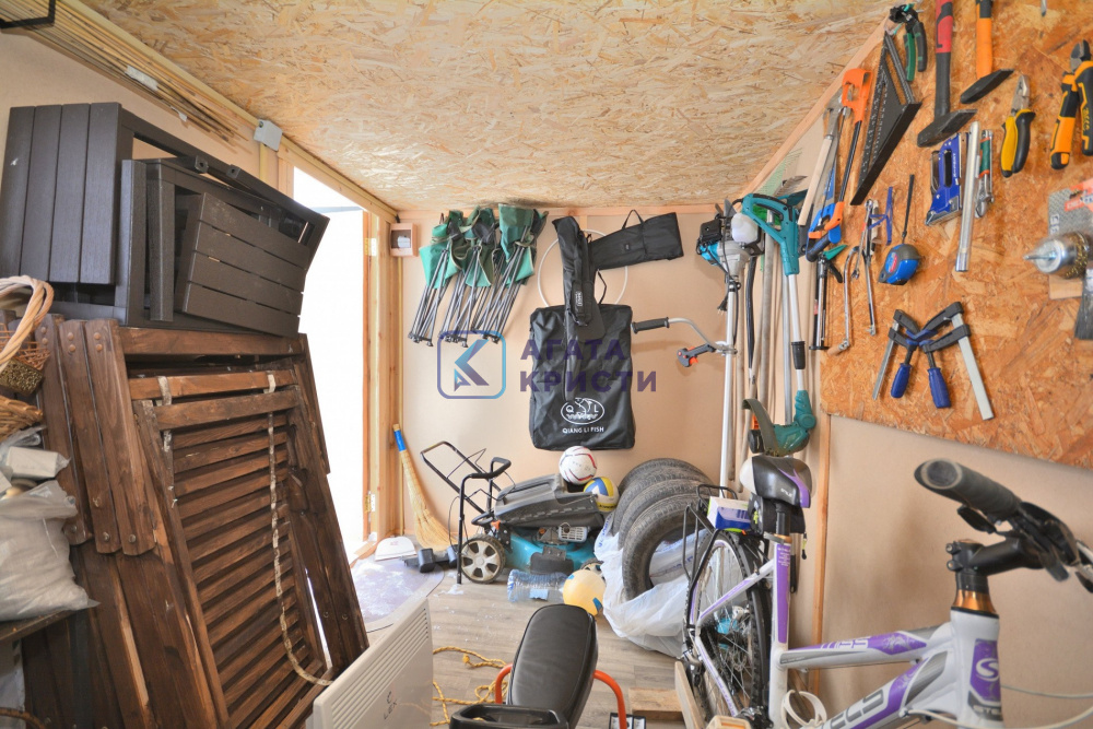 Участок правильной прямоугольной формы, сухой находится на возвышенности. Участок облагорожен, есть теплицы, плодовые насаждения, имеется зона отдыха. В передней части осталось достаточно места для строительства второго дома.