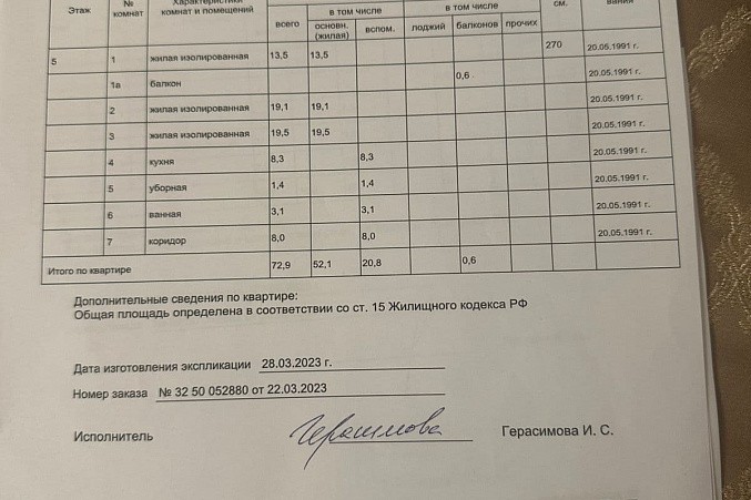 Продажа трехкомнатной квартиры 72.9 м2, 5 / 5