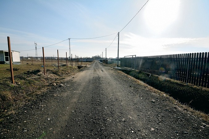 Участки правильной прямоугольной формы с естественным наклоном в сторону дороги. Соседи устанавливают заборы и возводят постройки.