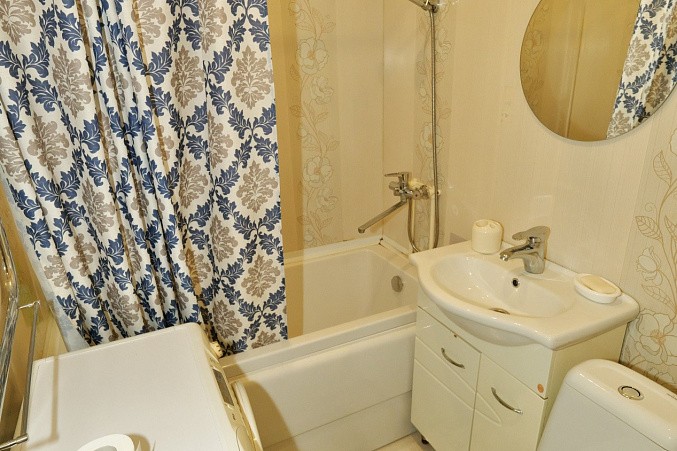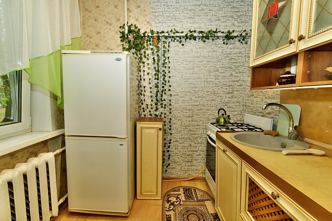 Есть вся необходимая мебель и техника (двухкамерный холодильник, телевизор, стиральная машина), кухонная мебель, шкаф, двухспальный диван.