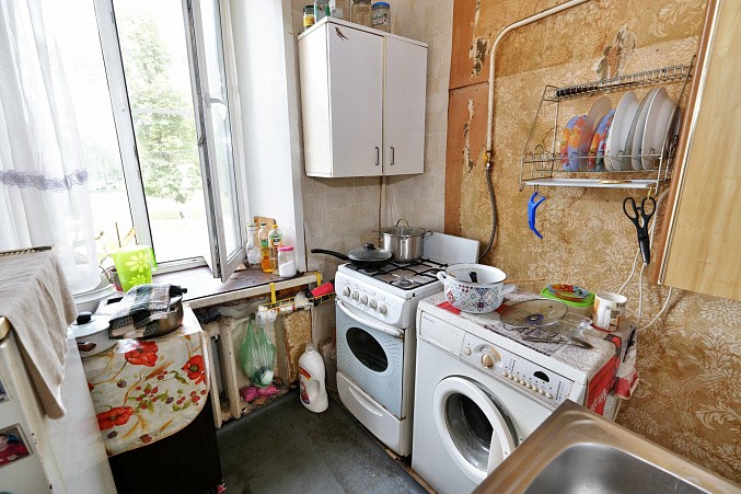 Есть всё необходимое для проживания: холодильник, газовая плита, стиральная машинка.