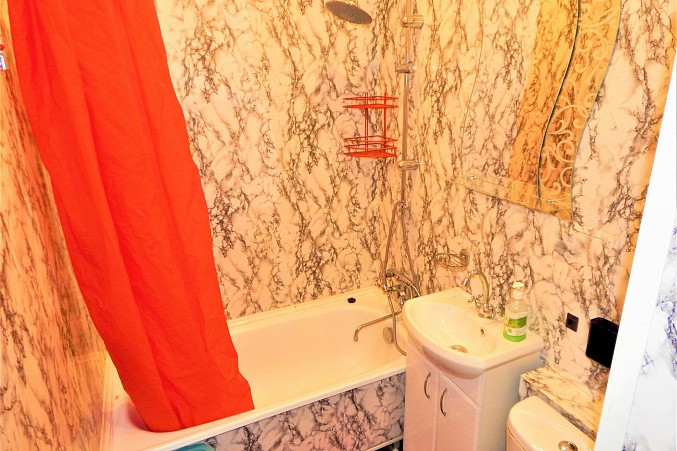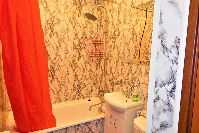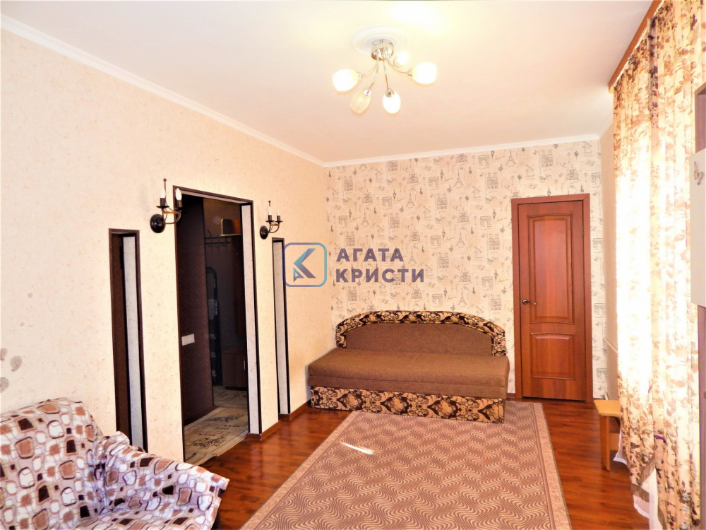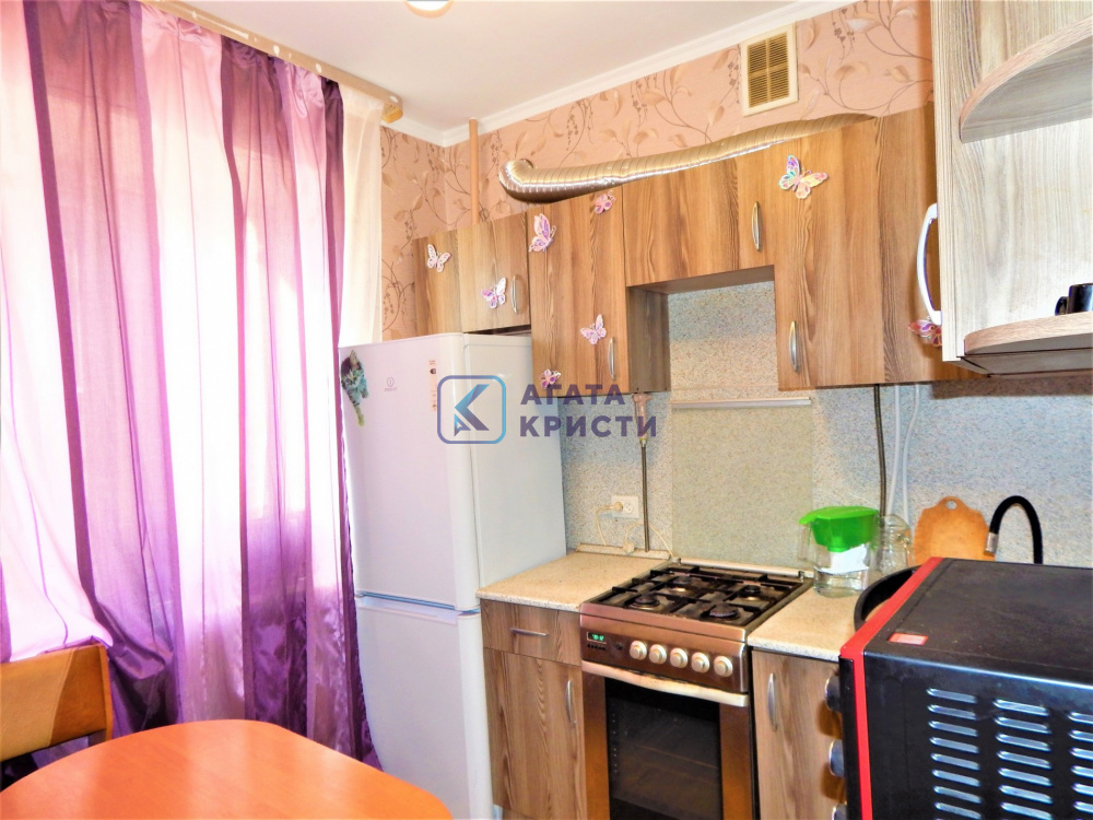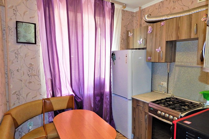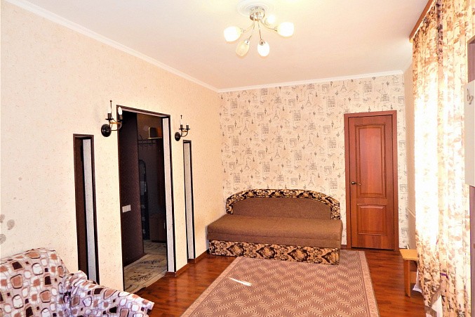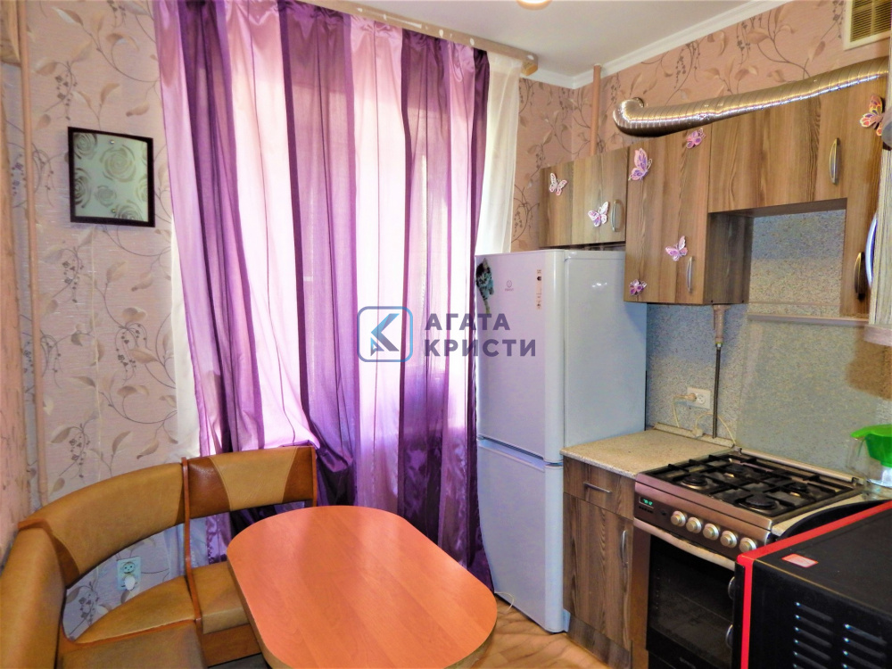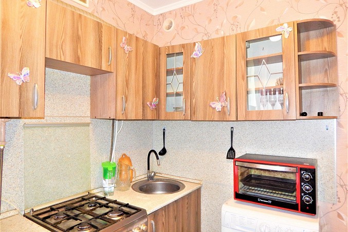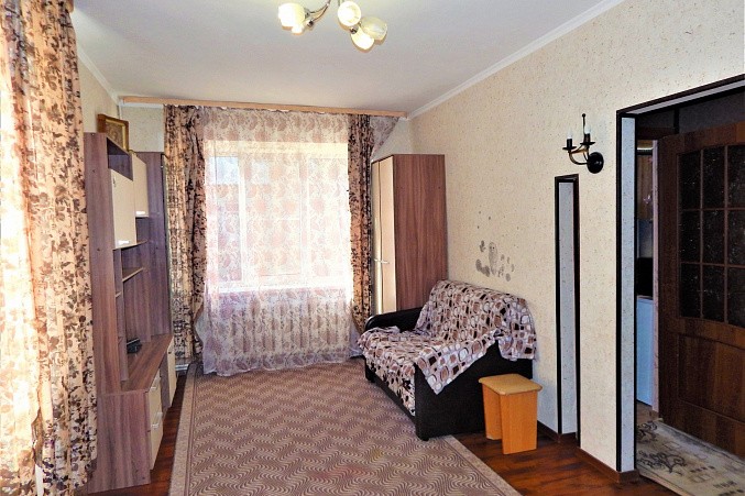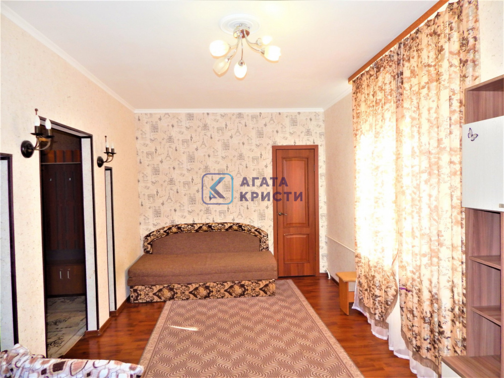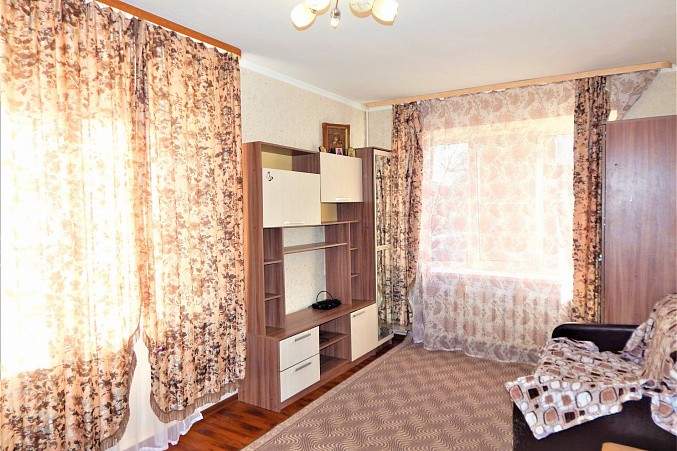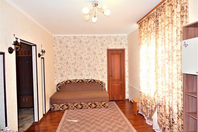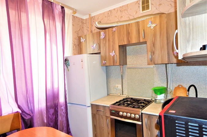 В квартире есть вся необходимая мебель и техника (холодильник, стиральная машина, телевизор) для проживания. Два кресла-дивана, кухонный гарнитур. Квартира очень светлая и теплая. Во дворе за квартирой закреплен палисадник.