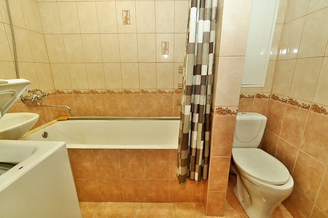 Есть вся необходимая мебель и техника (холодильник, стиральная машина, телевизор).