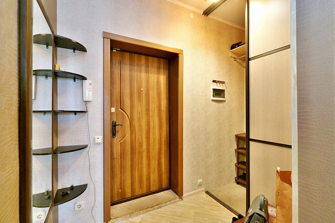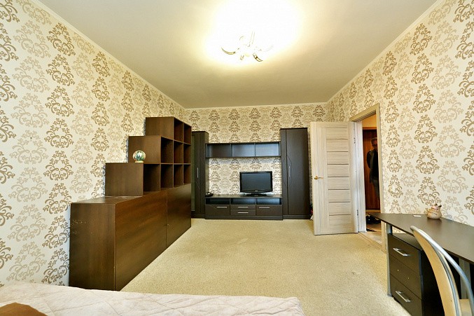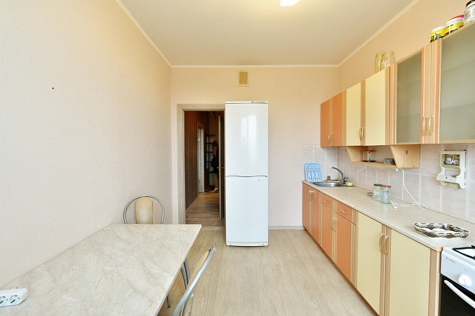 Удобная планировка квартиры: большая кухня 12 кв.м, комната 20 кв.м, просторная лоджия. В прихожей есть большой шкаф-купе.