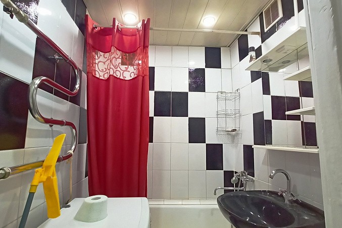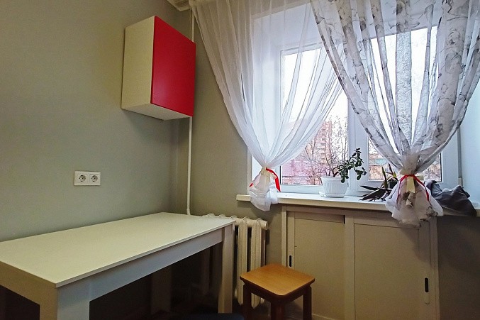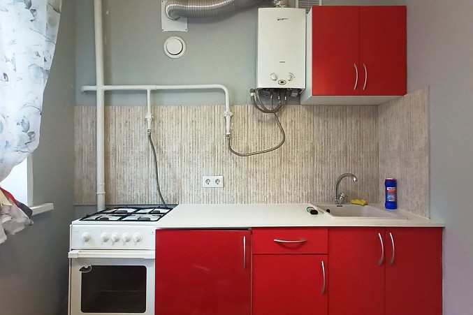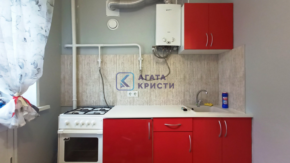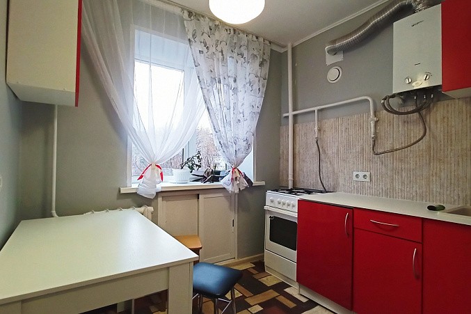 Есть вся необходимая мебель и техника: двухкамерный холодильник, стиральная машина, кухонная мебель, шкаф, кровать. Установлена газовая колонка-автомат. Имеется балкон.