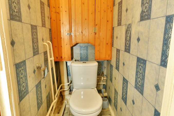 Большой балкон длиной 6 метров с выходом из кухни и комнаты. Санузел раздельный. Центральная горячая вода. Кухня площадью 8 кв.м.