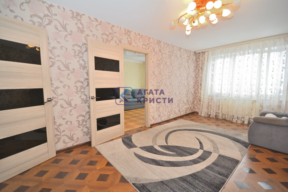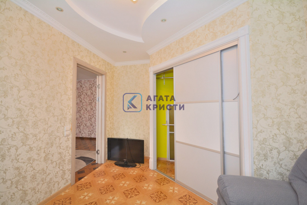 В квартире есть вся необходимая для проживания техника и мебель. Просторные комнаты, 2 гардеробные, совмещенный санузел, лоджия, большая кухня.